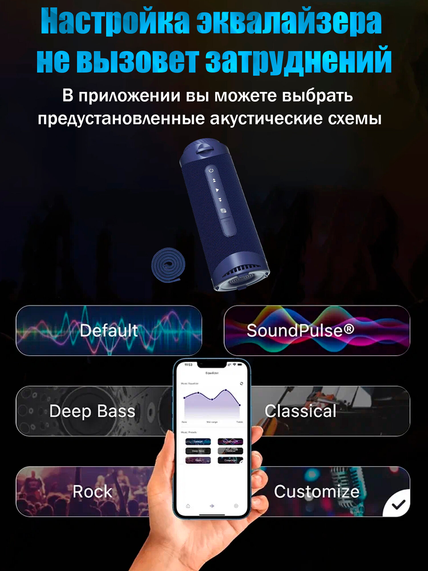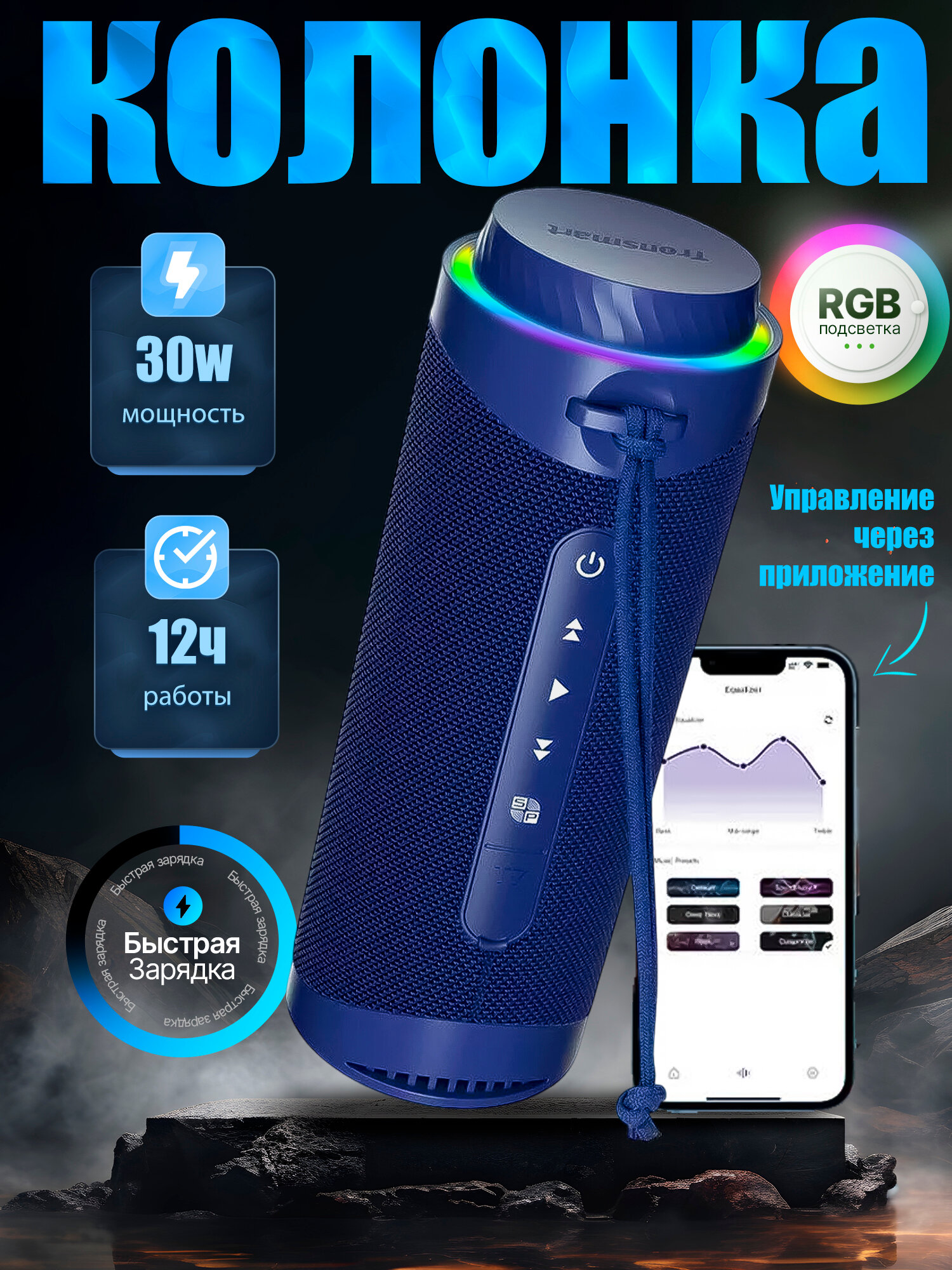 Колонка портативная, Tronsmart T7 30W Bluetooth, с подсветкой, влагозащита IPX7, синий: сравнение цен, характеристики, фото, актуальное наличие и цены.
