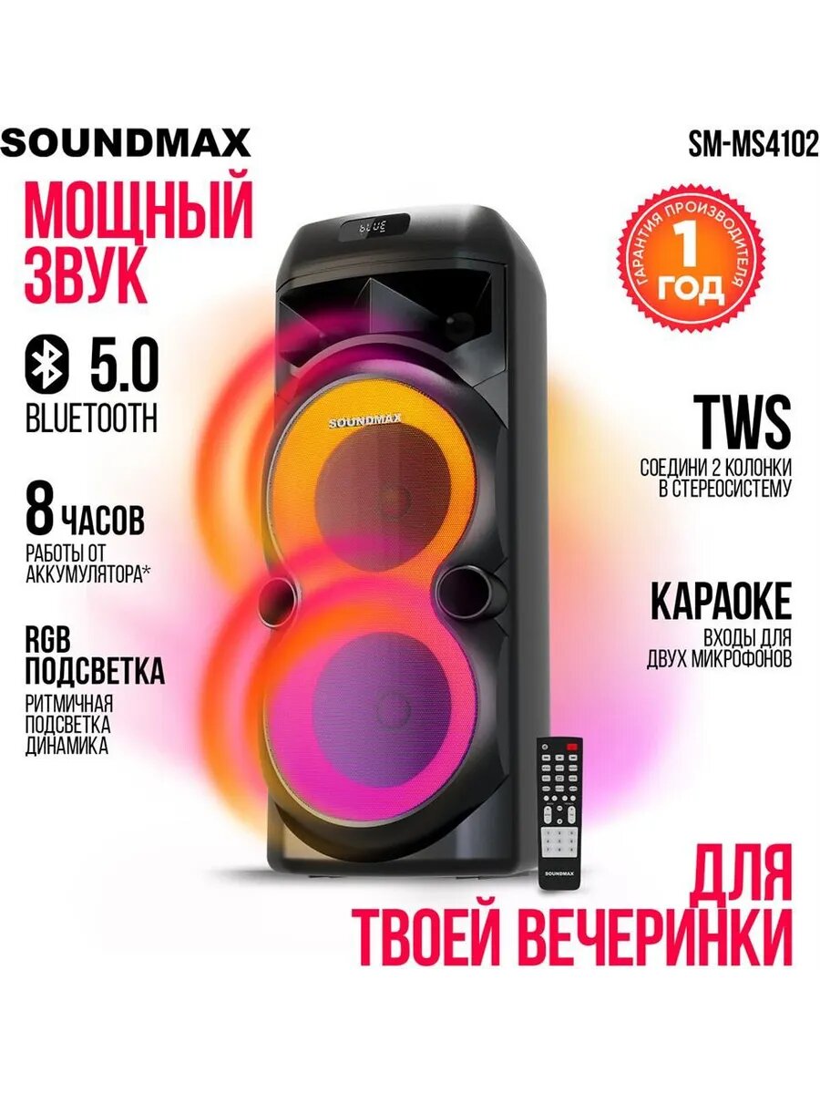Портативная аудиосистема SM-MS4102 100Вт Черный: сравнение цен, характеристики, фото, актуальное наличие и цены.