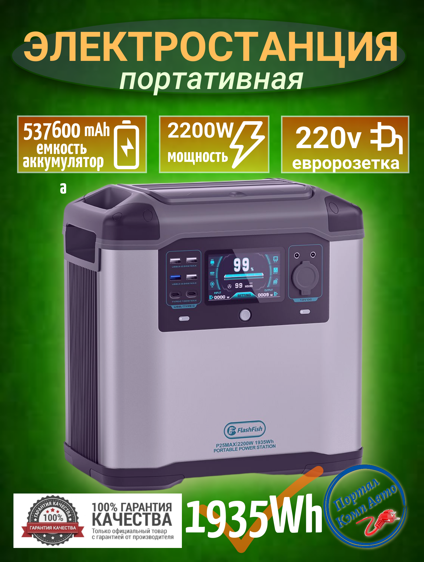 Портативная автономная электростанция Flashfish 537600mAh 1935Wh 2000-2200W Аккумуляторная батарея: сравнение цен, характеристики, фото, актуальное наличие и цены.