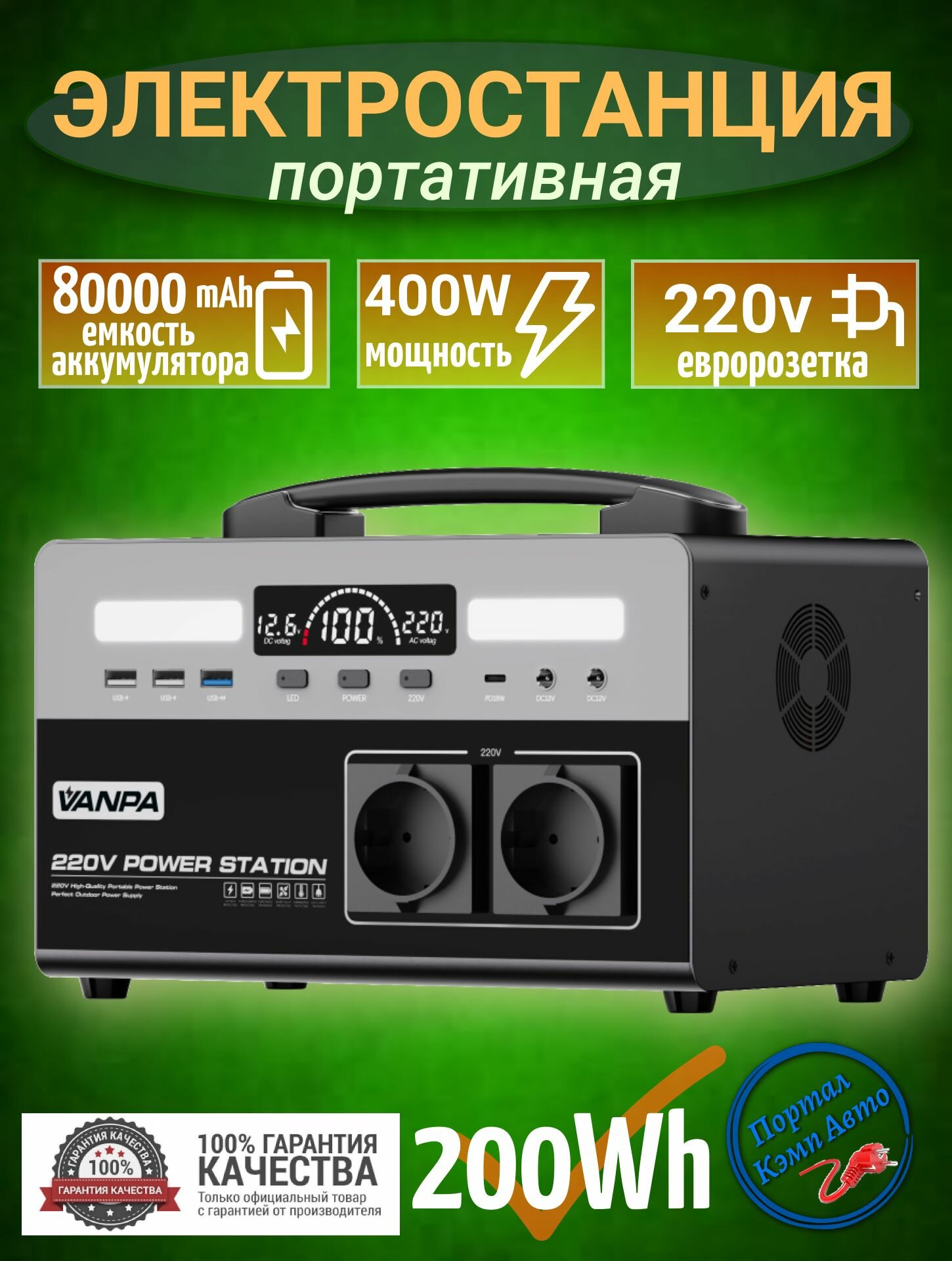 Купить Портативная автономная электростанция VANPA 200Wh 400Вт 80000мАч. Аккумуляторная батарея с доставкой по всей России.