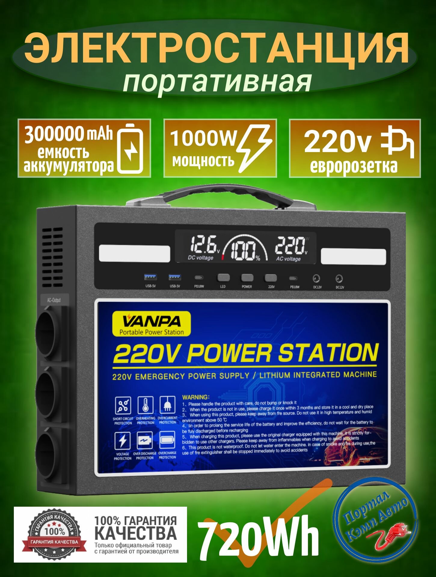 Портативная автономная электростанция VANPA 300000mAh 720Wh 1000Вт Аккумуляторная батарея: сравнение цен, характеристики, фото, актуальное наличие и цены.