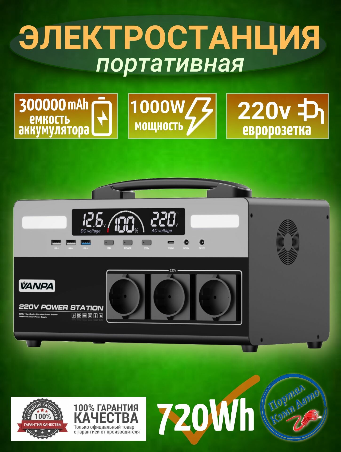 Портативная автономная электростанция VANPA 720Wh 1000Вт 300000мАч. Аккумуляторная батарея: сравнение цен, характеристики, фото, актуальное наличие и цены.