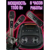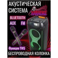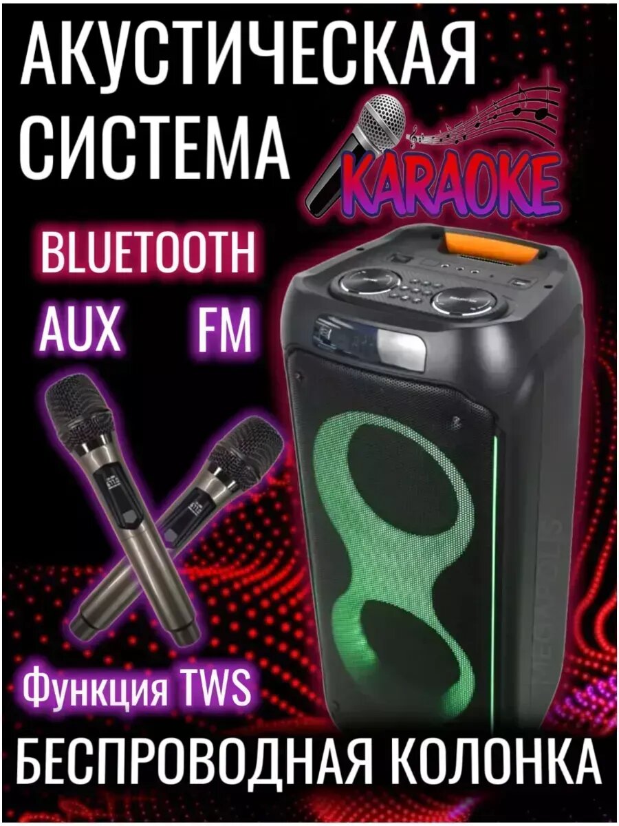 Данная модель также даёт возможность подключения к колонке ещё и одного проводного микрофона, а также возможностью подключения какого либо музыкального инструмента. Для караоке достаточно подключить к колонке телефон, планшет или телевизор с интернетом, найти на YouTube любимую песню. Мощная беспроводная караоке bluetooth колонка поистине революционное слово в индустрии портативных акустических систем. Данная колонка обладает многофункциональным эквалайзером: настройка общей громкости, настройка низких и высоких частот.