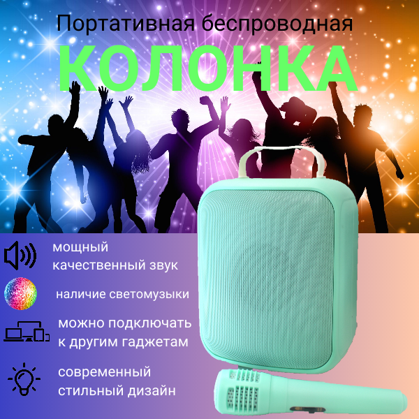 Купить Портативная беспроводная Bluetooth колонка Караоке ZQS1462Y с подсветкой Голубой с доставкой по всей России. Портативная беспроводная Bluetooth колонка Караоке ZQS1462Y с подсветкой Голубой: сравнение цен, характеристики, фото, актуальное наличие и цены.