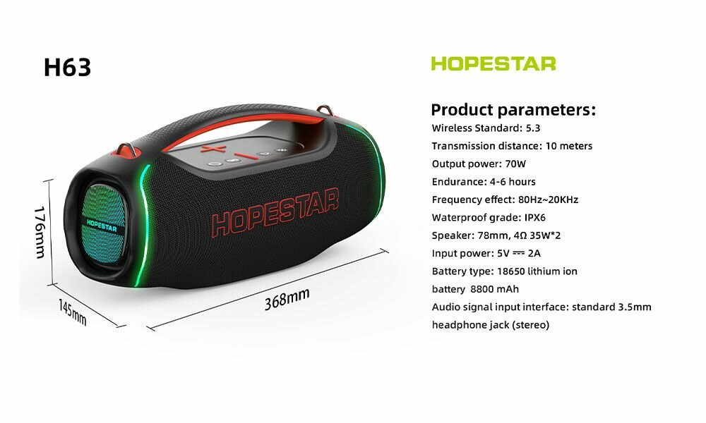 Портативная беспроводная колонка Hopestar H63 70 вт 8800 mAh чёрная: сравнение цен, характеристики, фото, актуальное наличие и цены.