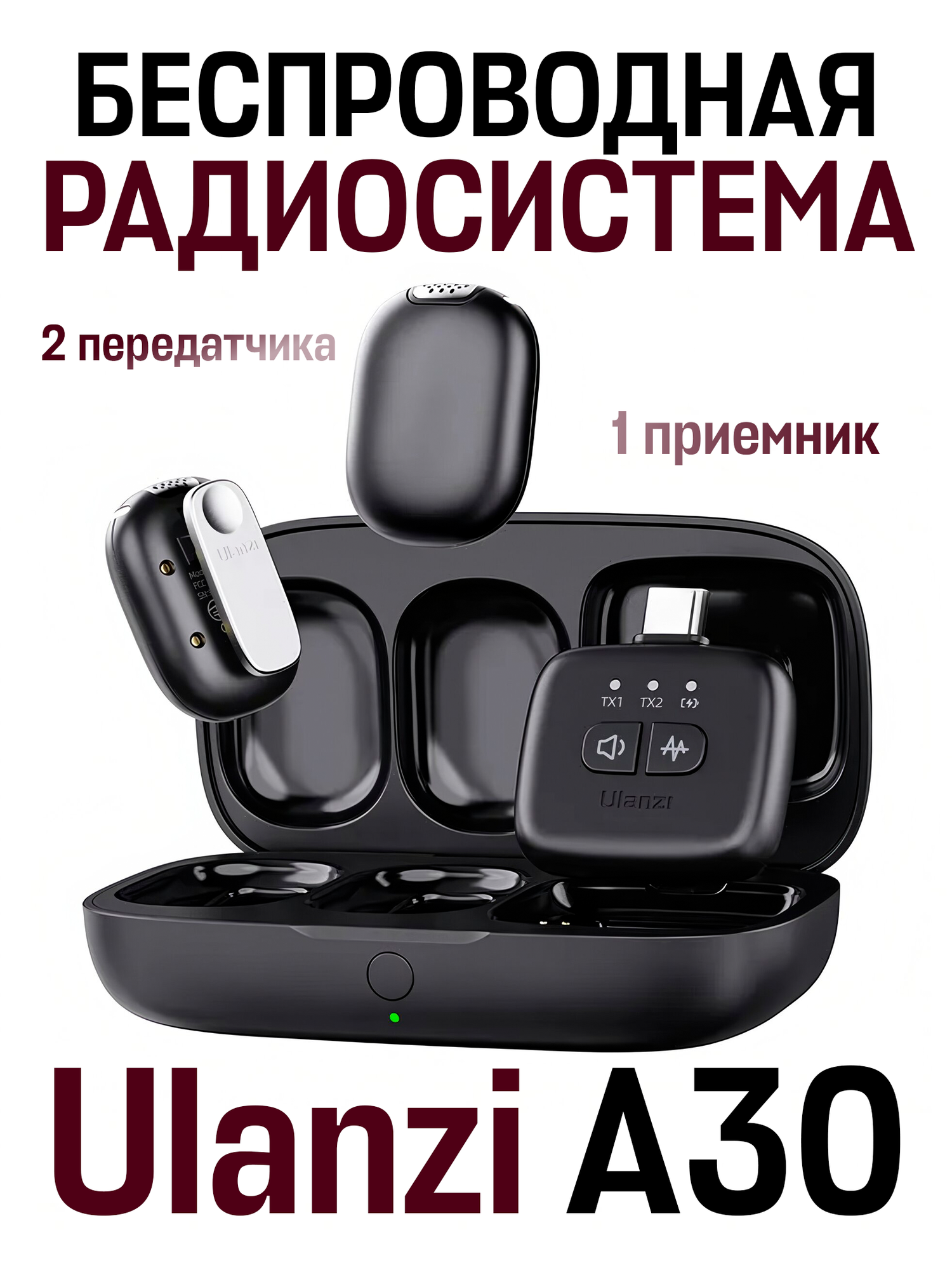 Портативная беспроводная микрофонная система Ulanzi A30 с частотой 2,4 ГГц USB Type-C, черный: сравнение цен, характеристики, фото, актуальное наличие и цены.