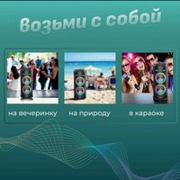 | Особенности | FM-радио, NFC, влагозащищенный корпус, встроенный микрофон (функция HandsFree), дисплей, караоке, поддержка microSD, работа в пассивном режиме, режим Power Bank, ремешок, ручка, световые эффекты |