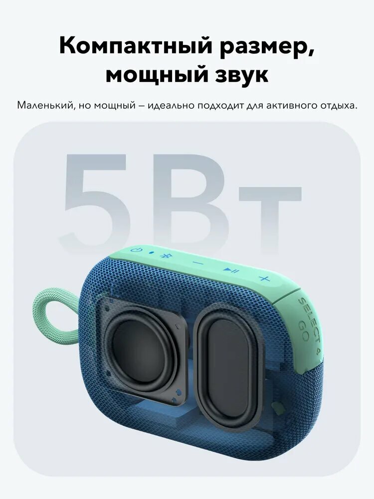 Soundcore Select 4 Go - это миниатюрная беспроводная колонка с ярким дизайном. Несмотря на компактные размеры, Bluetooth-динамик с выходной мощностью 5 Вт обеспечивает мощный и впечатляющий звук, а также чистое и динамичное звучание, которое порадует даже самых требовательных слушателей.