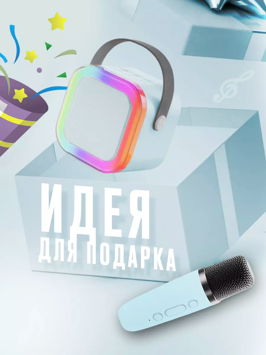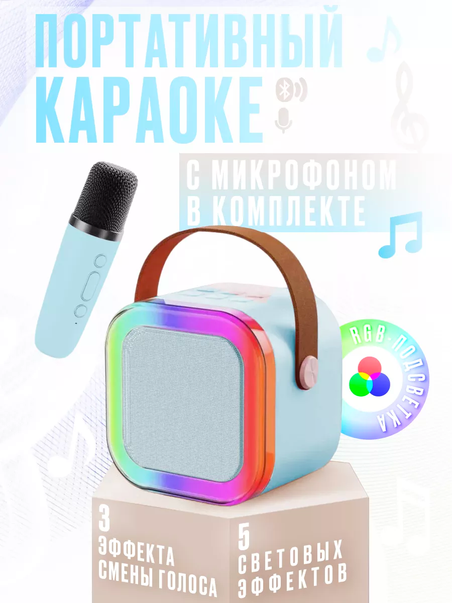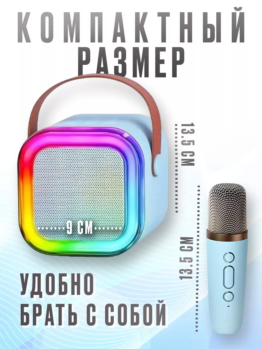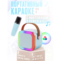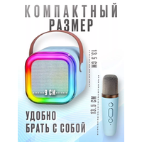 Купить Портативная блютуз мини колонка караоке с 1-м микрофоном, BLUETOOTH, музыкальная переносная колонка, караоке система для дома и в путешествиях, голубой с доставкой по всей России.
