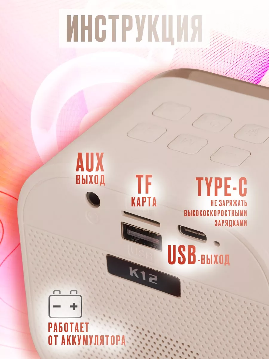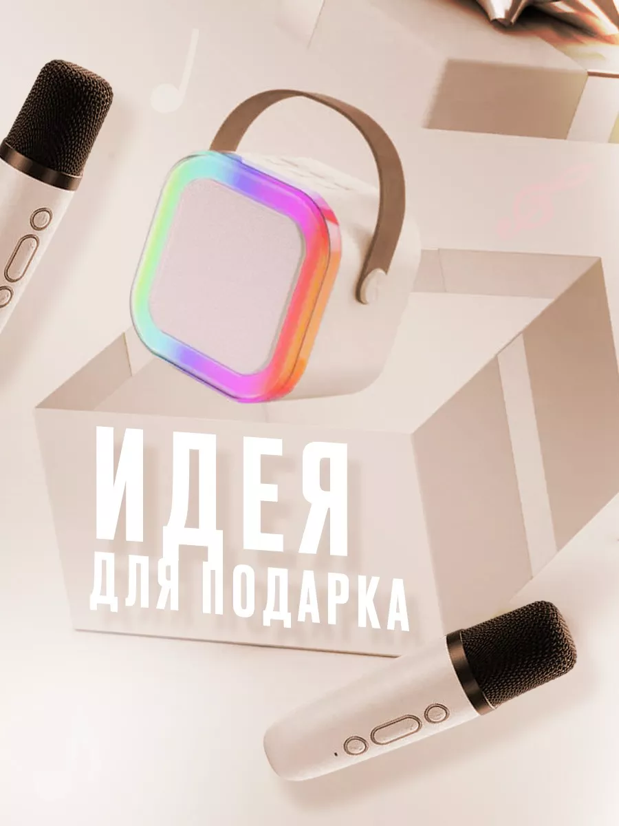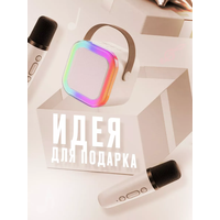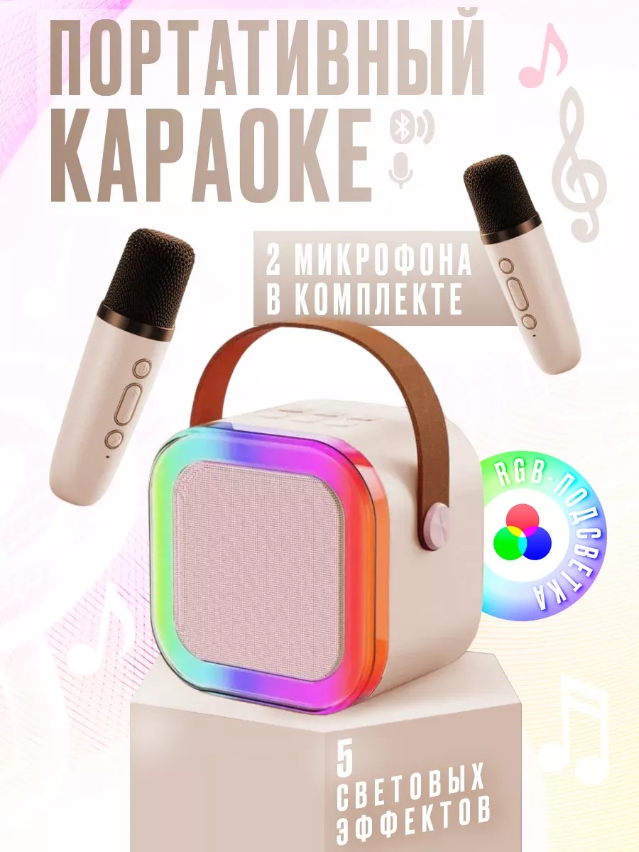 Купить Портативная блютуз мини колонка караоке с 2-мя микрофонами бежевый, BLUETOOTH, музыкальная переносная колонка, караоке система для дома и в путешествиях с доставкой по всей России.