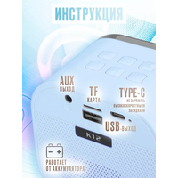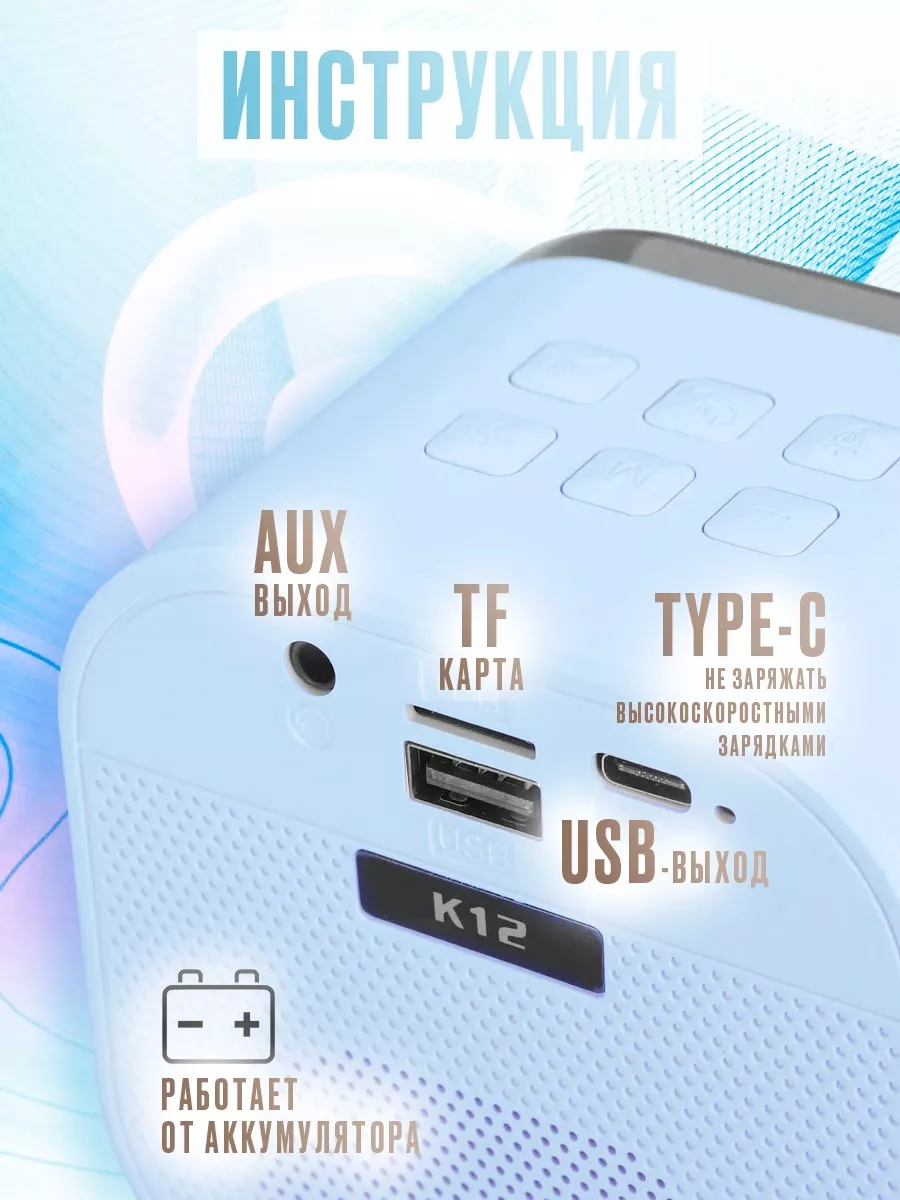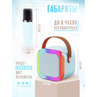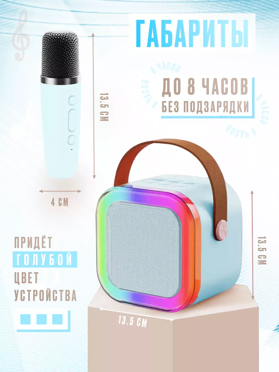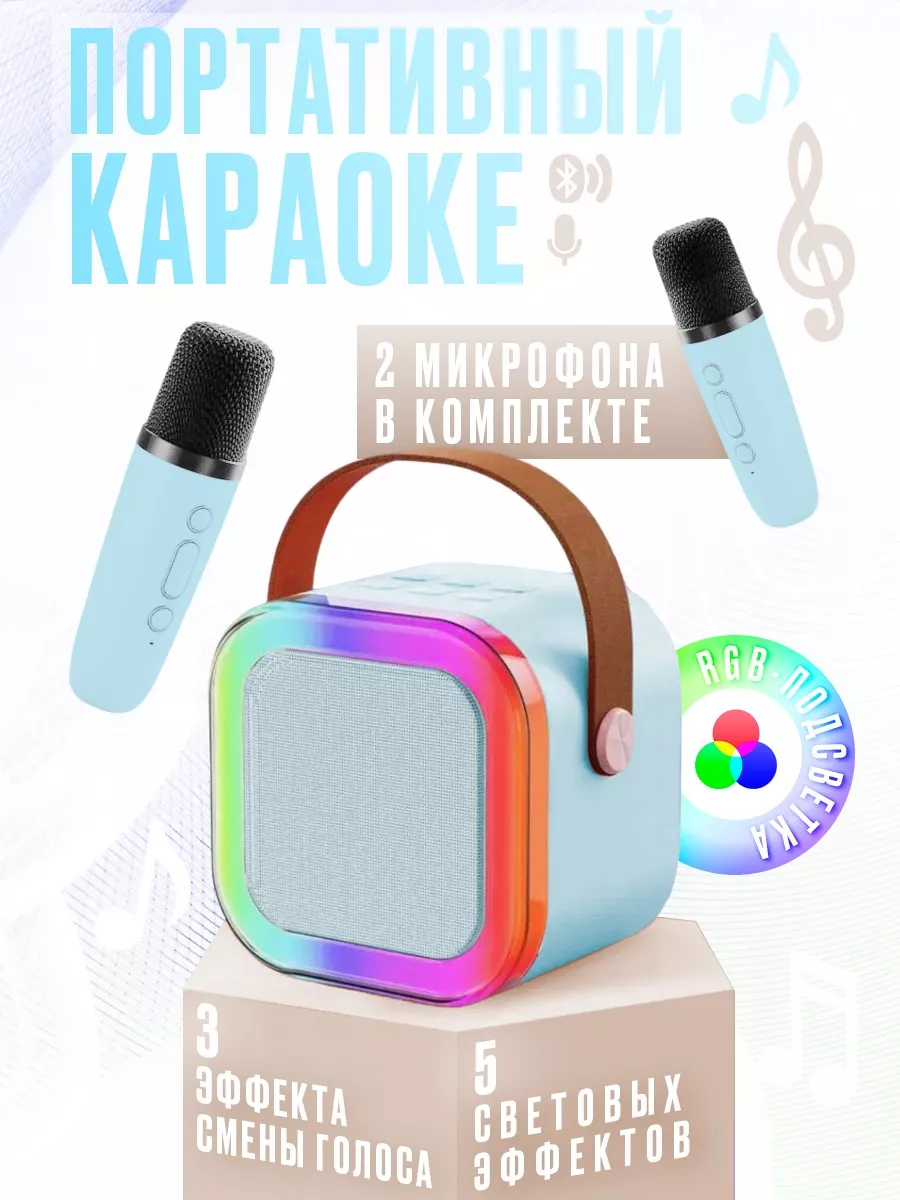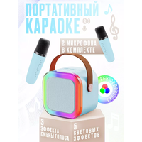 Купить Портативная блютуз мини колонка караоке с 2-мя микрофонами голубая, BLUETOOTH, музыкальная переносная колонка, караоке система для дома и в путешествиях с доставкой по всей России.