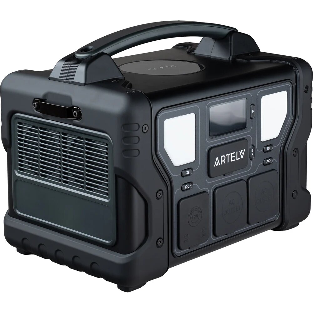 ARTELV Энергия 700 — мощная и надежная портативная электростанция для любых условий! Отправляетесь в поход, на рыбалку или в путешествие на авто? Живете в загородном доме и нуждаетесь в резервном источнике питания? ARTELV Энергия 700 — ваш надежный источник энергии в любом путешествии, на природе или дома! Мощность и автономность LiFePO4 аккумулятор 168 000 мА·ч — долгая работа даже при интенсивном использовании. Номинальная мощность 700 Вт — заряжает гаджеты, питает инструменты, медицинское оборудование и бытовые приборы. Более 3000 циклов заряда — долговечность в любых условиях. Чистый синус — защита вашей техники, безопасная работа с чувствительной электроникой (ноутбуки, телефоны, медицинские устройства). Универсальная зарядка От сети 220 В — быстрое восстановление емкости. От солнечных панелей (18-23 В) — идеально для кемпинга и походов. От автомобильного прикуривателя (12 В) — зарядка в дороге. Удобство и безопасность Яркий информативный дисплей — контроль заряда, мощности и режимов работы. Многоуровневая защита — от перегрузки, короткого замыкания, перегрева и глубокого разряда. Встроенные фонари — освещение в темное время суток. Прочный корпус из ABS-пластика — защита от ударов, влаги и пыли. Все нужные разъемы в одном устройстве USB QC3.0 (18 Вт), Type-C PD (60 Вт), беспроводная зарядка (10 Вт) — для смартфонов и планшетов. DC-выходы, Anderson-порт (240 Вт) — для мощных приборов и инструментов. Прочная ручка — легкая переноска.