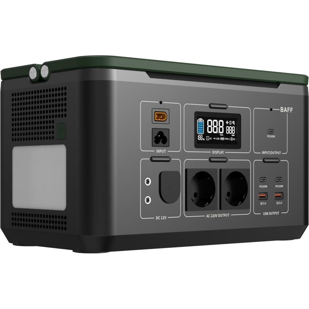 Портативная электростанция BAFF 10.2, электроемкость батареи 1099 Вт*ч, цвет темно-зеленый/графит