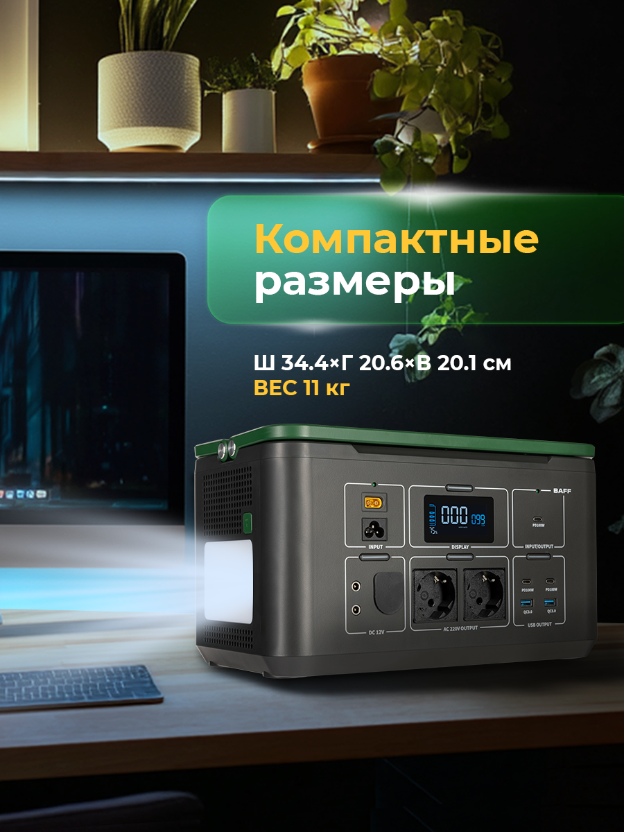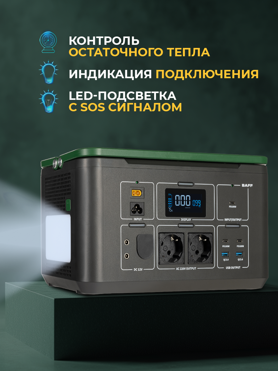 Купить Портативная электростанция BAFF 10.2, электроемкость батареи 1099 Вт*ч, цвет темно-зеленый/графит с доставкой по всей России.