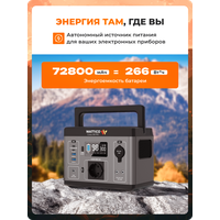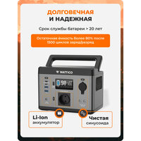 Представляем Вам мощную портативную электростанцию Wattico 300 Вт, которая станет идеальным решением для путешествий и кемпинга, дачи и дома, для охоты и рыбалки. Этот внешний аккумулятор с розеткой обладает ёмкостью 72 800 мАч и пиковой мощностью 600 Вт, так что Вы можете быть уверены в надёжной поддержке ваших электронных устройств. Зарядная станция поддерживает быструю зарядку, сквозной заряд и гарантирует безопасность использования, благодаря встроенной системе защиты.