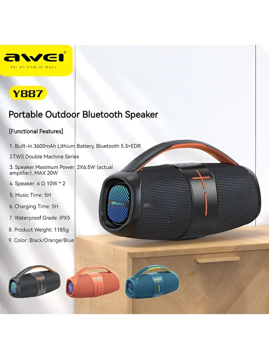 Портативная колонка Awei «Y887», Bluetooth 5.3, автономная работа до 5 ч, IPX5, синяя: сравнение цен, характеристики, фото, актуальное наличие и цены.