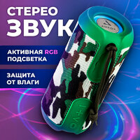 Купить Влагозащитная портативная колонка bluetooth, AMFOX, ASP-777, 2 динамика по 5Вт, как jbl акустика с подсветкой, xiaomi, камуфляж с доставкой по всей России.