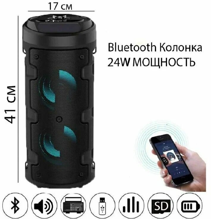 Функционал колонки включает в себя встроенное FM-радио, порт для SD-карт, USB флэшек, Bluetooth, вход для микрофона. В резонаторы вставлена динамическая светодиодная подсветка, которая добавит ярких красок в ваше торжество.