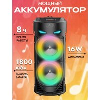| особенности | FM-радио, встроенный микрофон (функция HandsFree), караоке, поддержка microSD, работа в пассивном режиме, ремешок, ручка, световые эффекты |