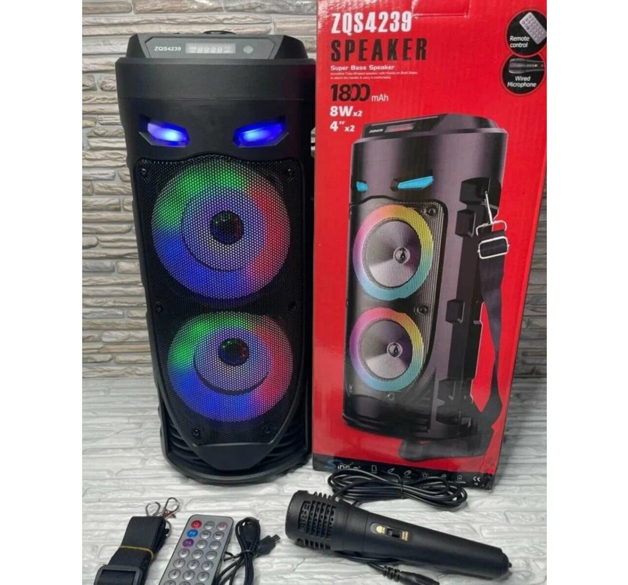 Портативная Bluetooth колонка ZQS-4239 с караоке и светомузыкой: мощный звук и стильный дизайн: сравнение цен, характеристики, фото, актуальное наличие и цены.