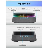 Купить Портативная колонка-часы 5в1 BBK BTA1212 черный, беспроводная зарядка, bluetooth, ночник, радио, будильник / хороший подарок с доставкой по всей России.