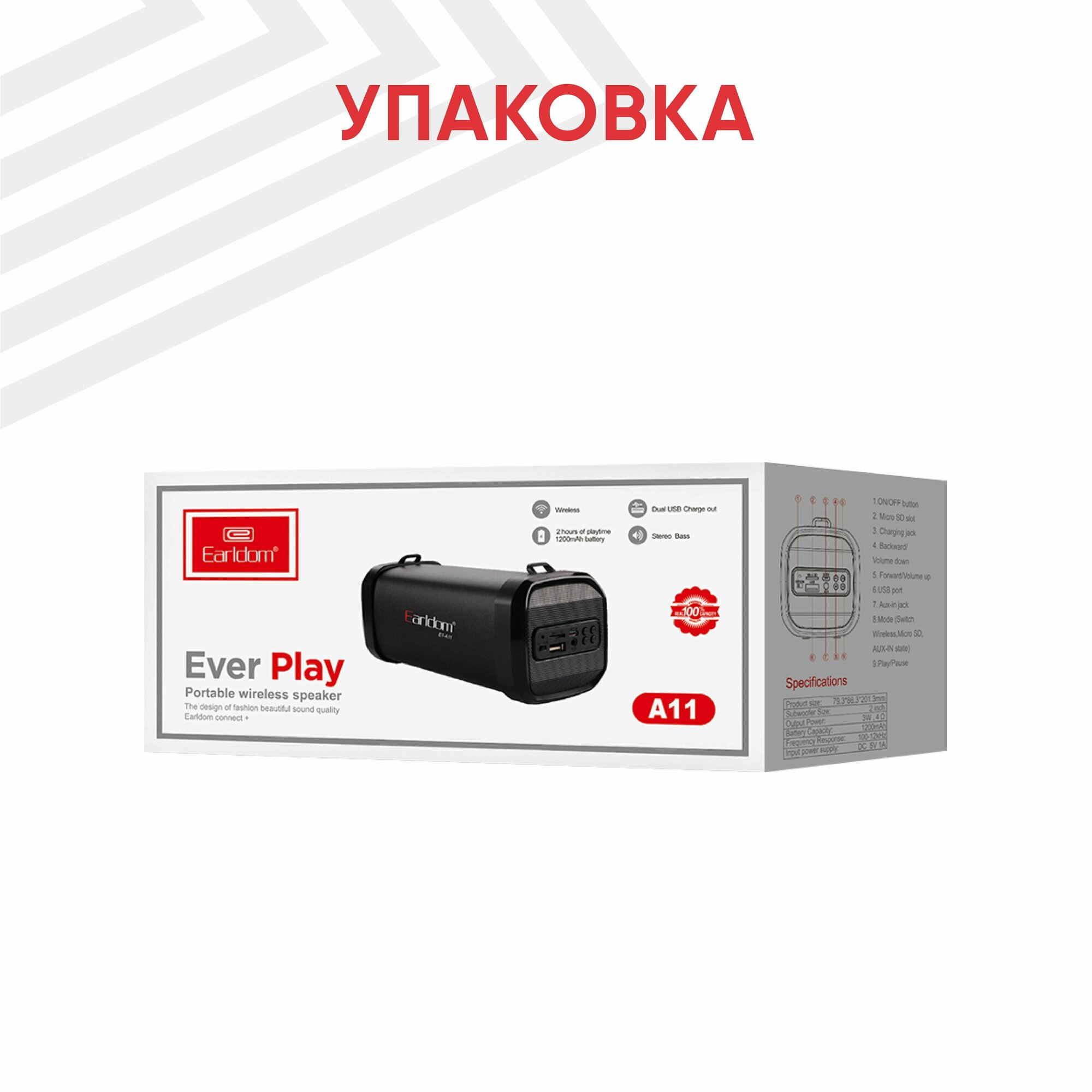 Портативная колонка Earldom ET-A11, 1200мАч, динамик 3Вт, BT5.0, MicroSD, USB, AUX, черный: сравнение цен, характеристики, фото, актуальное наличие и цены.