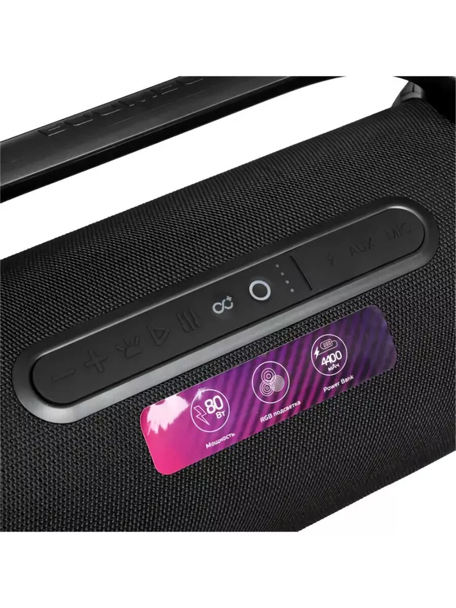 Портативная колонка Fiero Tonnerre P580 выполнена в корпусе с ручкой, что позволяет удобно носить ее с собой. Корпус защищен от воздействия пыли и воды по стандарту IPX5, поэтому выдерживает неблагоприятные погодные условия. Акустическая система с 3 динамиками мощностью 80 Вт обеспечивает формирование насыщенного и четкого звука. Встроенный микрофон передает голос во время звонков на мобильном устройстве. Беспроводная синхронизация осуществляется по технологии Bluetooth. На корпусе есть разъемы USB и AUX, считыватель карты памяти MicroSD, а также вход для микрофона. Аккумулятор емкостью 4400 мА*ч гарантирует до 9 часов автономности Fiero Tonnerre P580 в режиме прослушивания музыки.