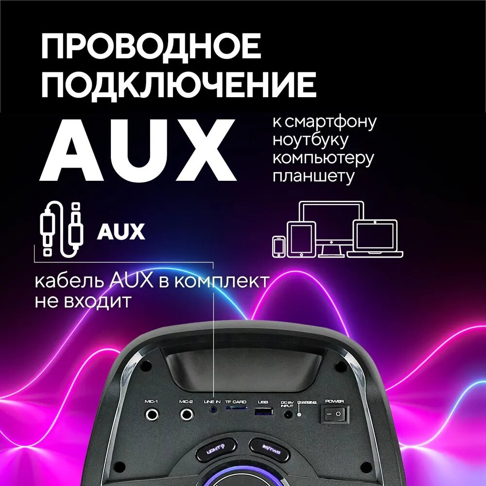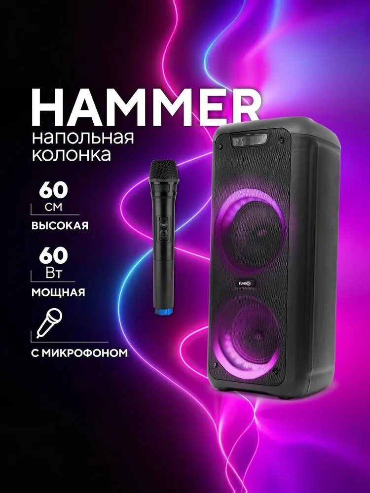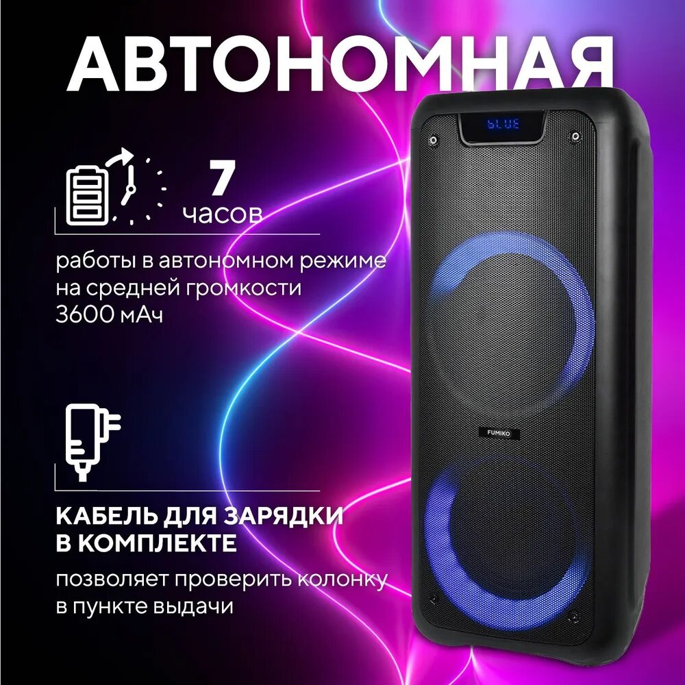 Портативная колонка FUMIKO «HAMMER», 60Вт, подсветка, микрофон, пульт ДУ, черная: сравнение цен, характеристики, фото, актуальное наличие и цены.