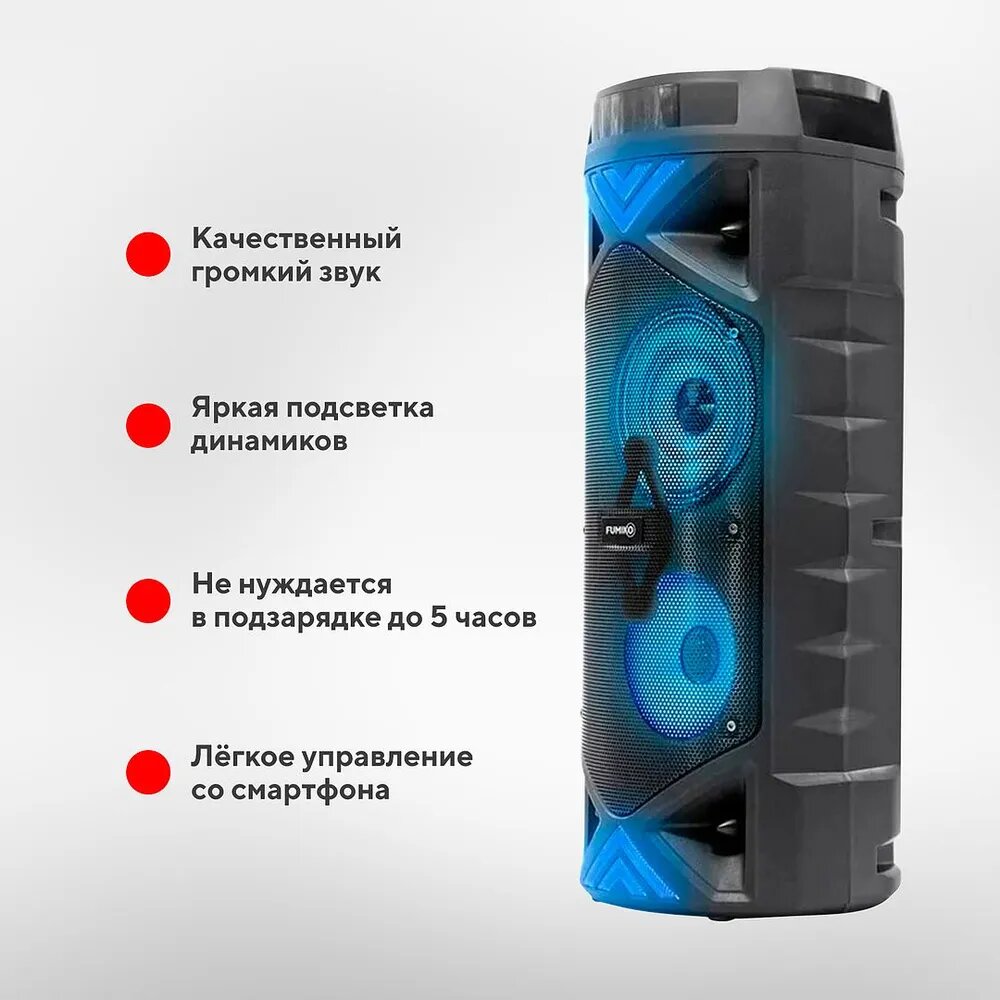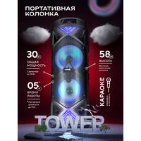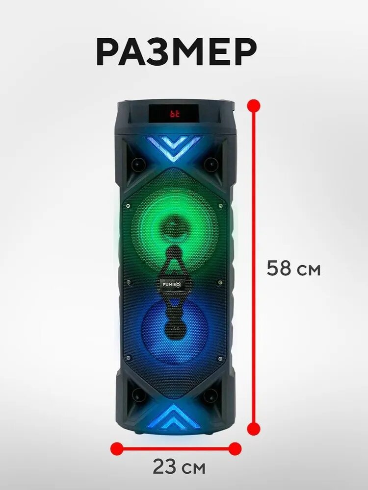 Портативная колонка FUMIKO TOWER, подсветка, микрофон, Bluetooth 5.0, черная: сравнение цен, характеристики, фото, актуальное наличие и цены.