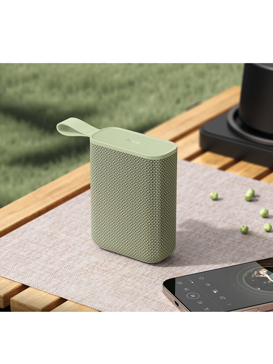 Портативная колонка Hoco HC34 5W выполнена в оливковом цвете и имеет прорезиненную тканевую поверхность, что придает ей стильный и современный вид.