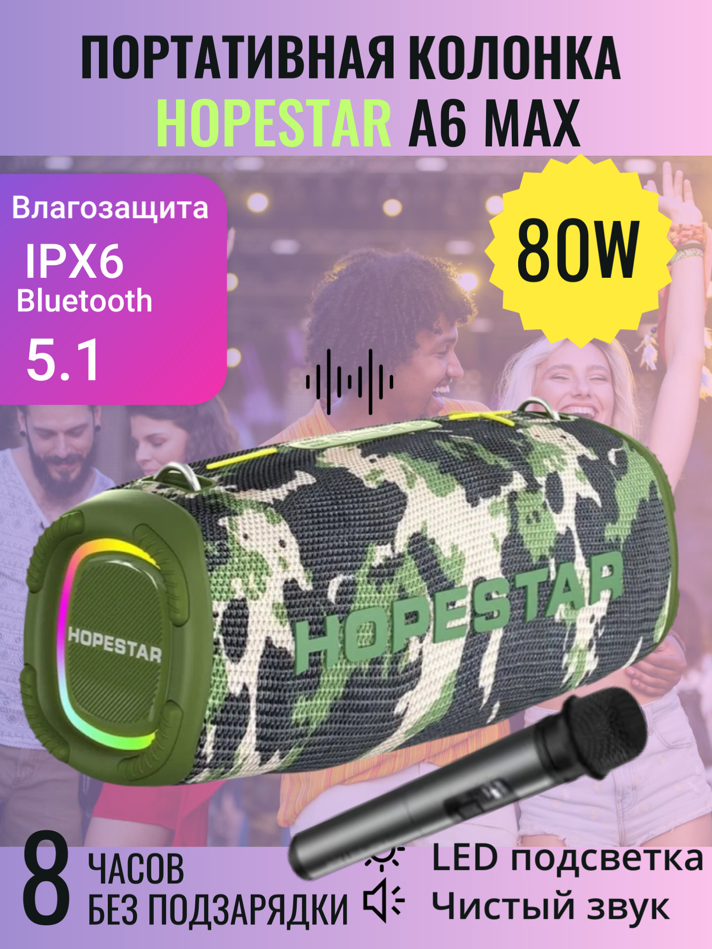 Портативная колонка Hopestar «A6 Max», 80вт, с микрофоном, Bluetooth, влагозащита IPX6: сравнение цен, характеристики, фото, актуальное наличие и цены.