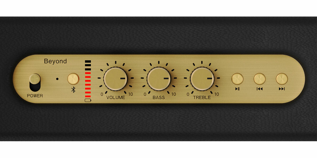 Благодаря металлическим ручкам для аналоговой регулировки громкости, низких и высоких частот вы можете тонко настроить звук по своему вкусу. А современный дизайн, качественные материалы и покрытие из эко-кожи делают Lonzuer Beyond идеальным элементом декора для любого интерьера.