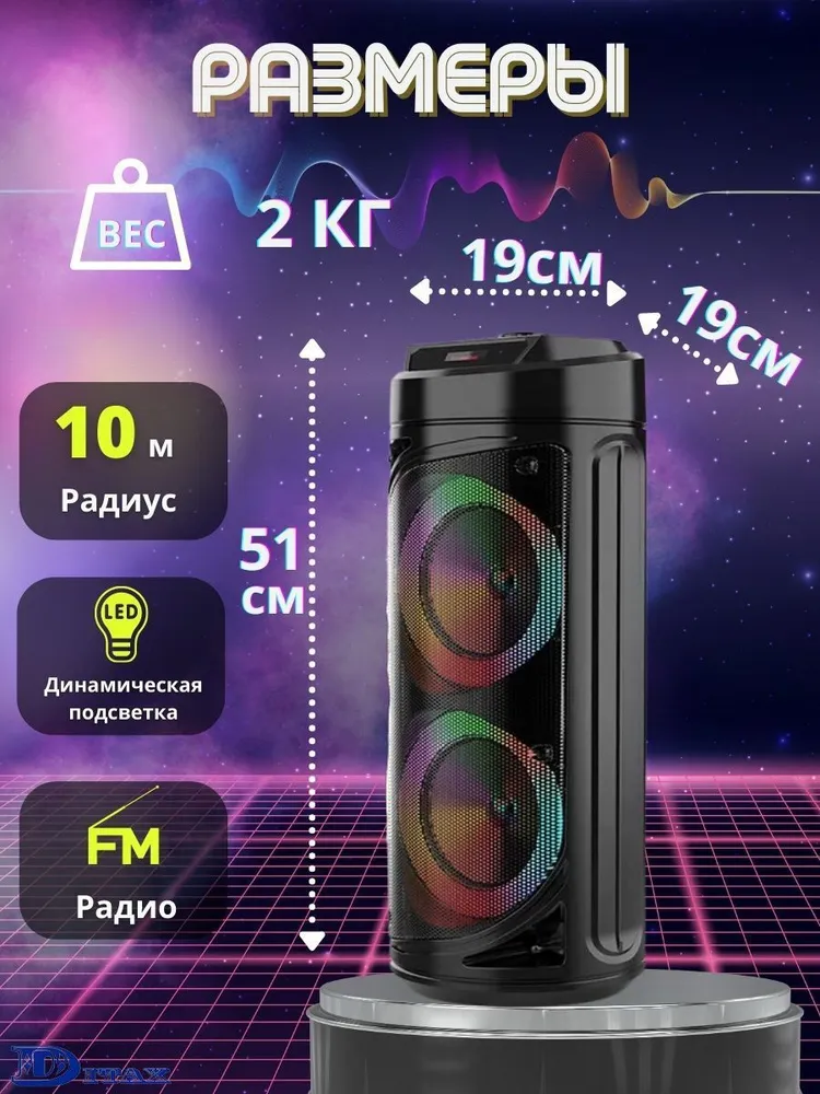 Портативная колонка – это уверенный шаг к созданию музыкальной атмосферы в вашей жизни. Она идеальна как для личного использования, так и для больших компаний. Вы сможете наслаждаться любимой музыкой, слушать радиостанции, участвовать в караоке – и все это в одном компактном устройстве. Если вы ищете высококачественную портативную колонку, которая включает в себя множество современных функций, обратите внимание на эту модель.