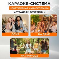 Портативная караоке-система и колонка в одном устройстве для дома придется по душе каждому меломану. Вас порадует большой цветной дисплей с эквалайзером и объемный чистый звук мощностью 20 Ватт. Легко заменит домашний музыкальный центр. Быстро подключается к телефону телевизору планшету ноутбуку с помощью блютуз или кабеля AUX. В комплекте 2 беспроводных микрофона для вокала с шумоподавлением. Также оснащены кнопками регулировки громкости, изменением голоса. Отличная возможность петь дуэтом любимые песни как взрослым, так и детям. Используйте как музыкальную колонку для вечеринки или домашний кинотеатр и наслаждайтесь отличным звучанием. Благодаря компактности, переносную аудиоколонку можно брать на природу, на дачу или на мероприятие. Встроенного аккумулятора хватит на 4-6 часов непрерывного использования. Устройте караоке батл на детском празднике у ребенка, мальчики и девочки будут в восторге! Эффект смены тембра голоса от низкого до высокого удивит всех. Профессиональная аудиосистема - отличный подарок на день рождения вашим близким и друзьям. Гарантия 1 год.