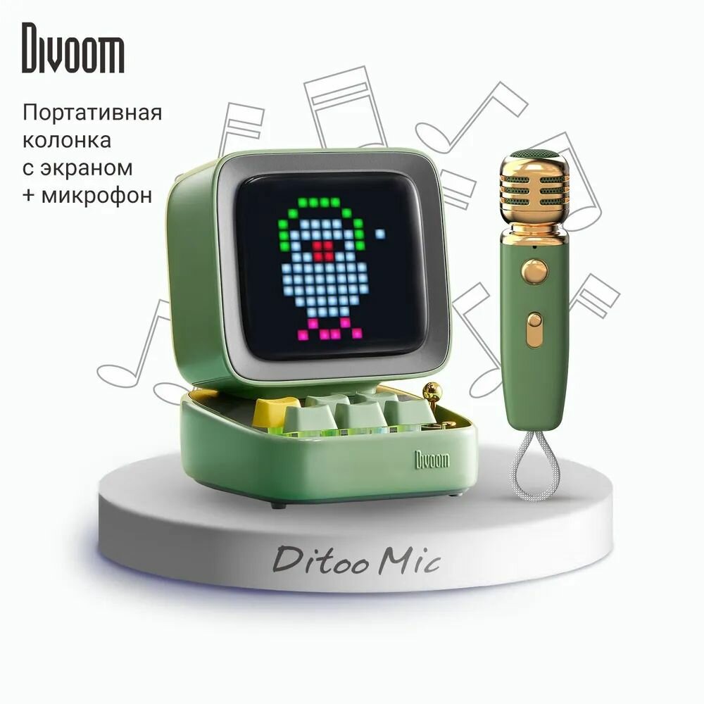 Портативная колонка с микрофоном Divoom Ditoo Mic Green 15 Вт LED-экран пиксельный Bluetooth Акк. 5000 мАч USB Type-C Слот Micro SD Эффект шумоподавления 9 голосовых режимов 18 звуковых эффектов: сравнение цен, характеристики, фото, актуальное наличие и цены.