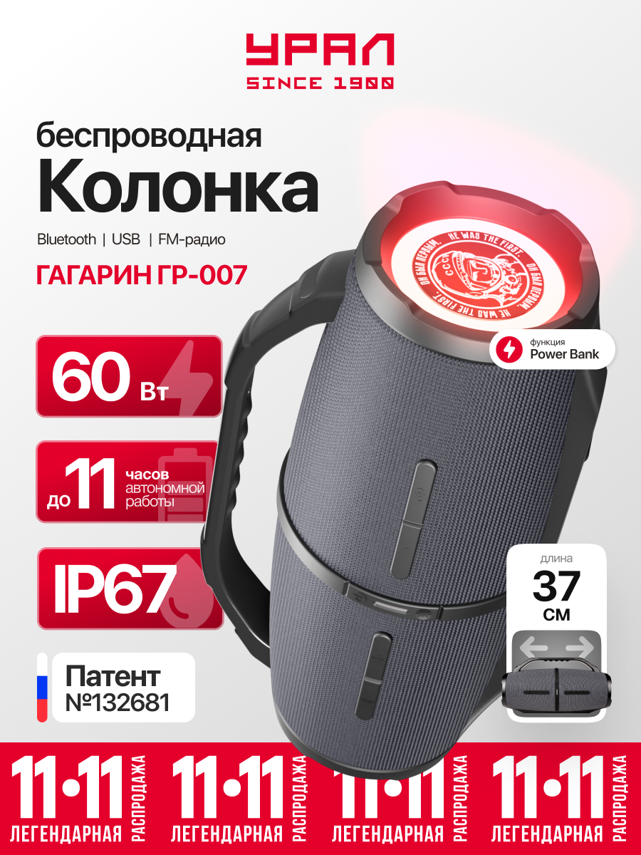 Представляем вам серию мобильных колонок урал гагарин — инновационный продукт, разработанный компанией урал и названный в честь первого человека, совершившего полет в космос - Ю. А. Гагарина! Наши инженеры разработали программное обеспечение, обеспечивающее идеальное звучание в любых условиях (максимальная выходная мощность 20x2+10x2 Вт, диапазон частот 50-20000 Гц, чувствительность 80 дБ). Мы активно работали над демпфированием акустических систем и подбором оптимальных вариантов защиты (IP67 от пыли и влаги), чтобы обеспечить максимально чистый и качественный звук (типоразмер громкоговорителя 2x96+2x32 мм). Колонка урал гагарин станет вашим верным спутником, она обладает радио FM и долго держит заряд (5000 мАч, 11 часов работы на 50% громкости, время заряда 5-6ч). Урал гагарин также обладает функцией TWS, вы сможете создать полноценную акустическую систему всего лишь соединив две колонки урал гагарин ГР-007 (Расстояние между колонками в режиме TWS, не более 5 метров). Колонка оснащена удобной прочной ручкой и подсветкой. Версия Bluetooth 5.0, профили Bluetooth - AVCR V1.6, A2DP V1.3, HSP V 1.2, Аудиокодек Bluetooth - SBC, Дальность действия Bluetooth не менее 10 метров. Напряжение внешнего источника питания 5 (2) ± 0,3 В. Комплектация: Акустическая система, Кабель аудио MiniJack (3,5 мм) – MiniJack (3,5 мм) (50 см) — 1 шт, Кабель USB — USB Type-C (50 см) — 1 шт, Руководство по эксплуатации — 1 шт, Упаковка — 1 шт.