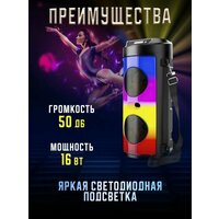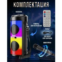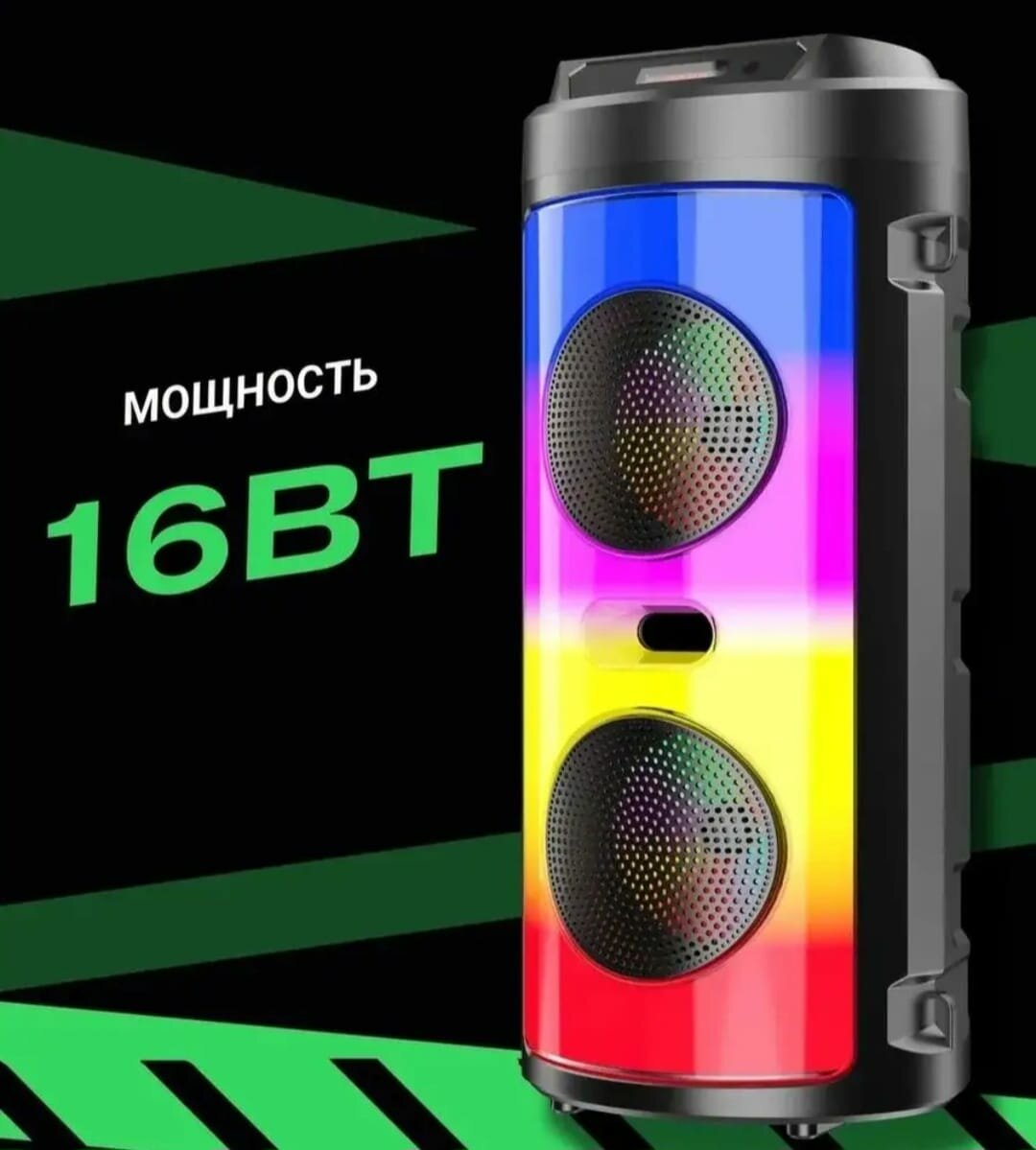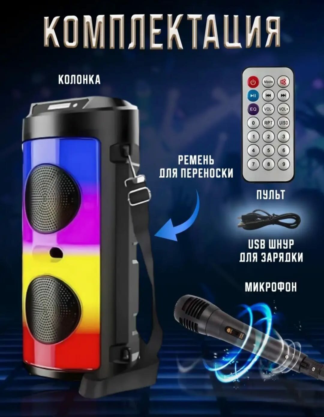 Стильная, переносная караоке-колонка ZQS 4248 с яркой RGB подсветкой по всей площади динамиков и качественным звуком.