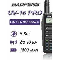 Портативная радиостанция BAOFENG UV-16 PRO черный /1800мАч ( 136-174/400-480) МГц/ 128 кан./ 5 Вт: сравнение цен, характеристики, фото, актуальное наличие и цены.