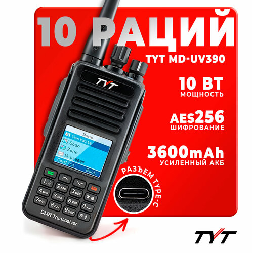 Купить Портативная радиостанция TYT MD-UV390 DMR 10 Вт AES 256 бит/Черная комплект 10 шт/UHF; VHF с доставкой по всей России.