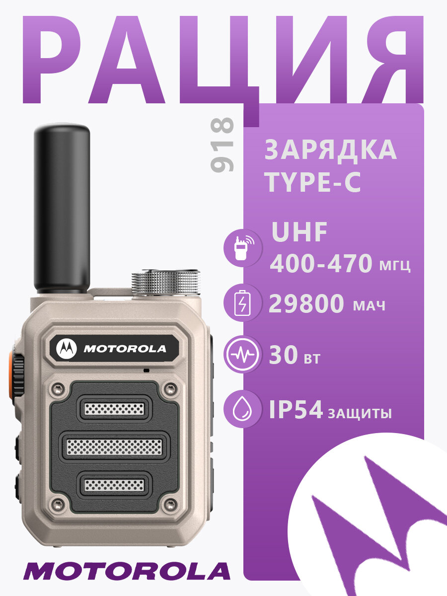 Портативная рация Motorola 918; Емкость аккумулятора 29800 мАч; Дальность связи: 5 км Количество каналов: 16