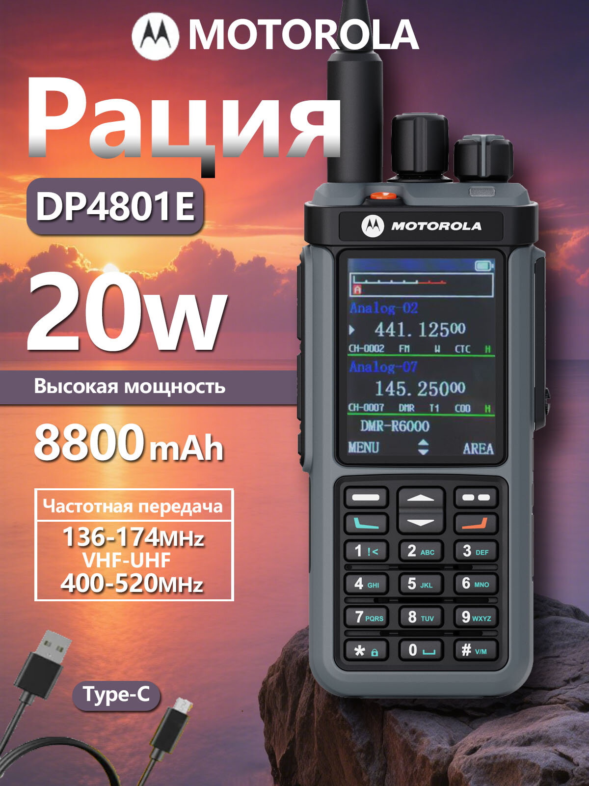 Портативная рация Motorola DP4801E, 20 Вт,8800 мАч, с разъемом для зарядки TYPE-C: сравнение цен, характеристики, фото, актуальное наличие и цены.