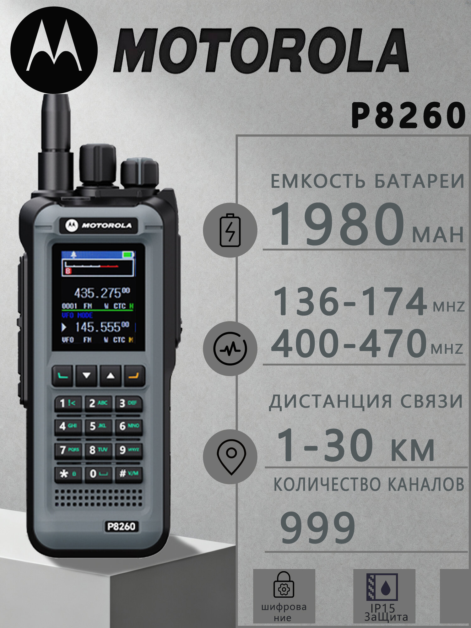 Портативная рация Motorola P8260; Емкость аккумулятора 19800 мАч; Дальность связи: 30 км Количество каналов: 999: сравнение цен, характеристики, фото, актуальное наличие и цены.
