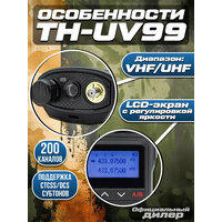 | Особенности | CTCSS, DCS, DMR, FM-радиоприемник, РоС-рация, аккумуляторы, блокировка клавиатуры, выбор уровня шумоподавления, голосовая активация без гарнитуры (iVOX), голосовая активация через гарнитуру (VOX), зарядное устройство, звук при нажатии кнопок, клипса, мониторинг каналов, переключение мощности передатчика, подключение гарнитуры, подставка для зарядки, программирование с компьютера, регулировка громкости, режим работы через ретранслятор, ремешок, сигнал окончания передачи (Roger Beep), сканирование двух каналов (Dual Watch), сканирование каналов, скремблер, таймер разговора, функция "нажми и говори" (PTT), шумоподавление |
