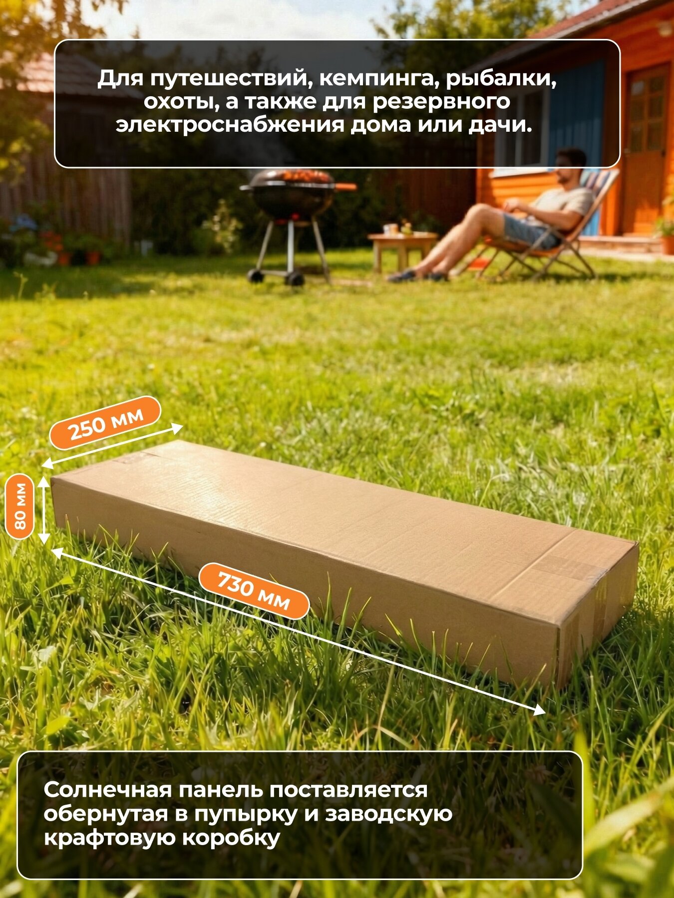 Комплектация и упаковка: солнечная панель поставляется обернутая в пупырку и заводскую крафтовую коробку.