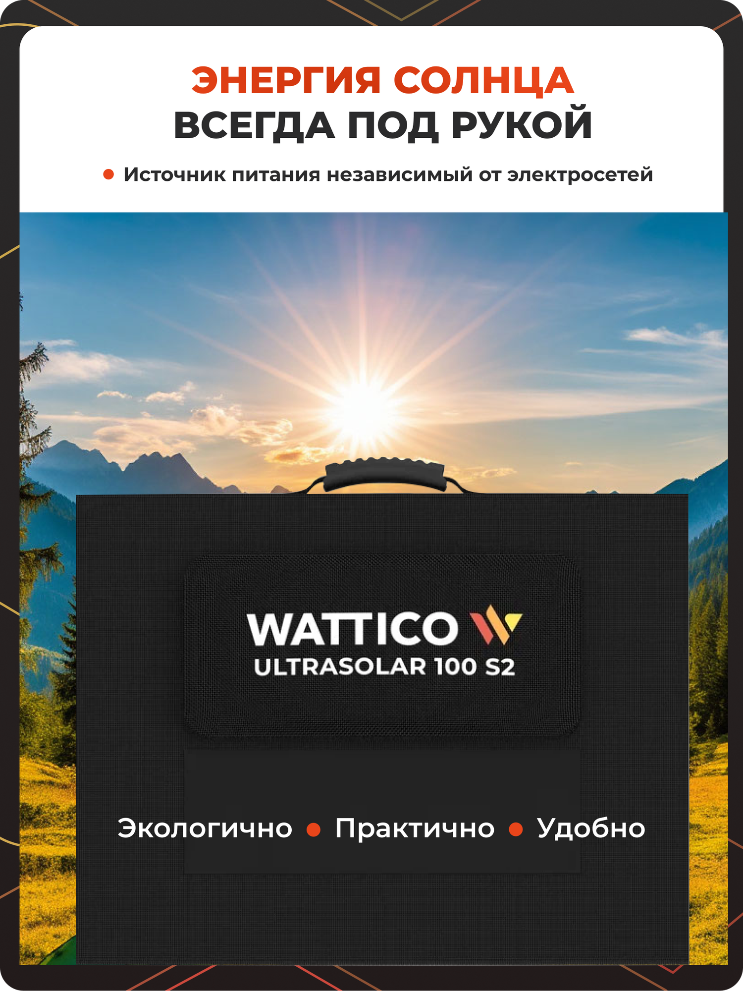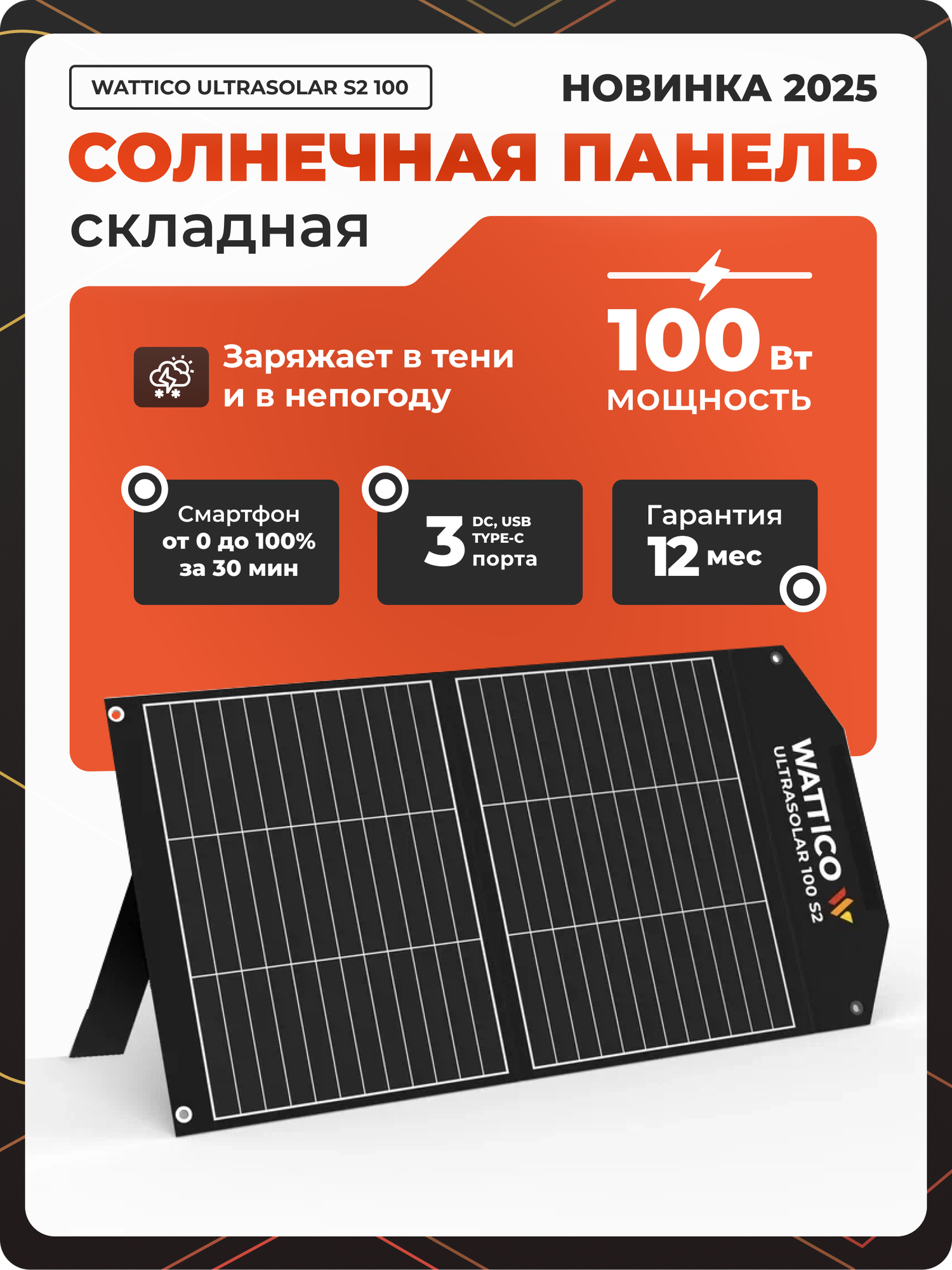 | Подробная комплектация | Портативная солнечная панель, кабель DC - DC 2 метра, инструкция |