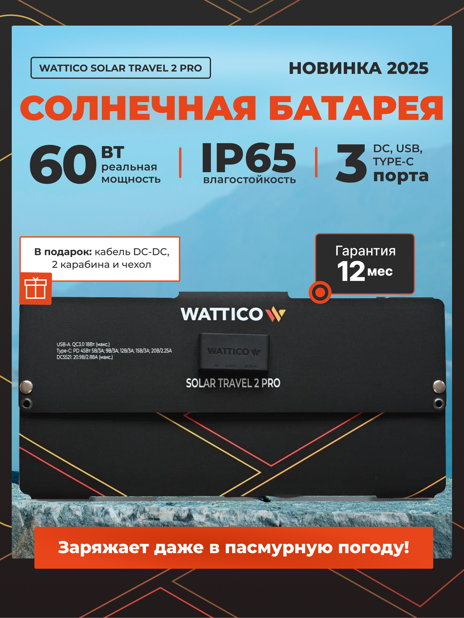 Портативная солнечная батарея панель Wattico 60Вт: сравнение цен, характеристики, фото, актуальное наличие и цены.