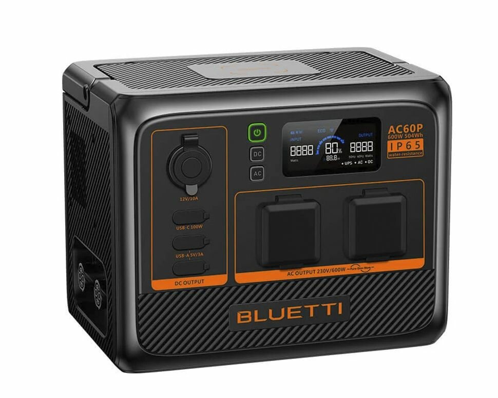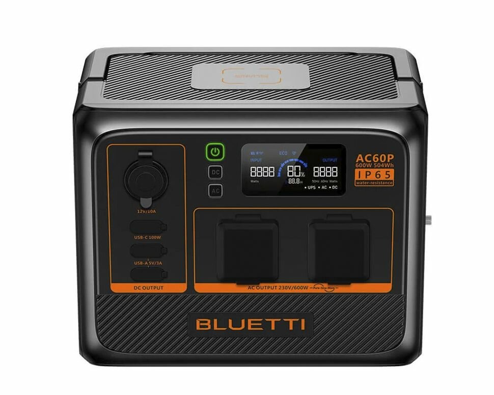 - Bluetti AC60P — первая в мире портативная электростанция со степенью защиты IP65, водо и пыленепроницаемая. Компактная конструкция, вес чуть более 9 килограммов и наличие удобной ручки для переноски позволяет легко брать ее с собой, обеспечивая вас электропитанием где угодно и когда угодно. Вы всегда будете уверены в своей энергонезависимости — на пыльной дороге или на берегу озера, под солнцем или под дождем.