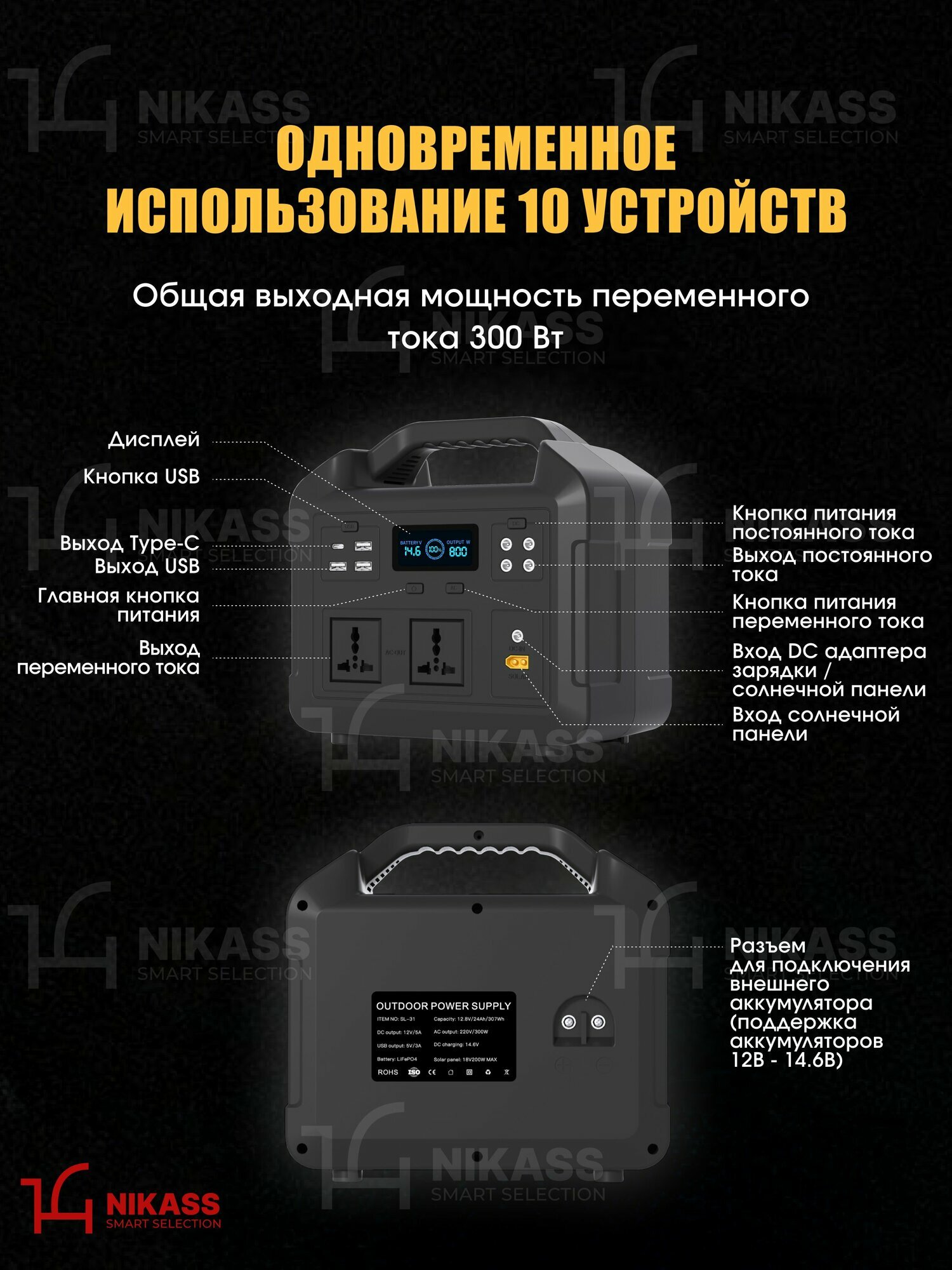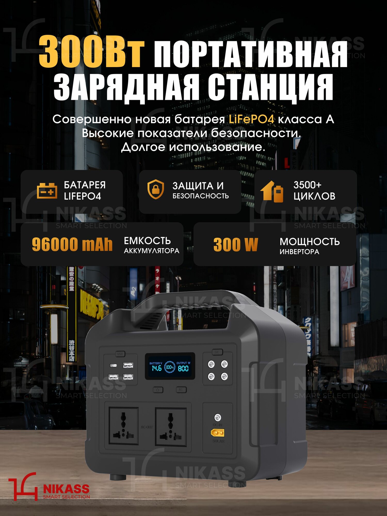 Портативная электростанция NIKASS 300 Вт: Независимое энергоснабжение для путешествий, дома и приключений!