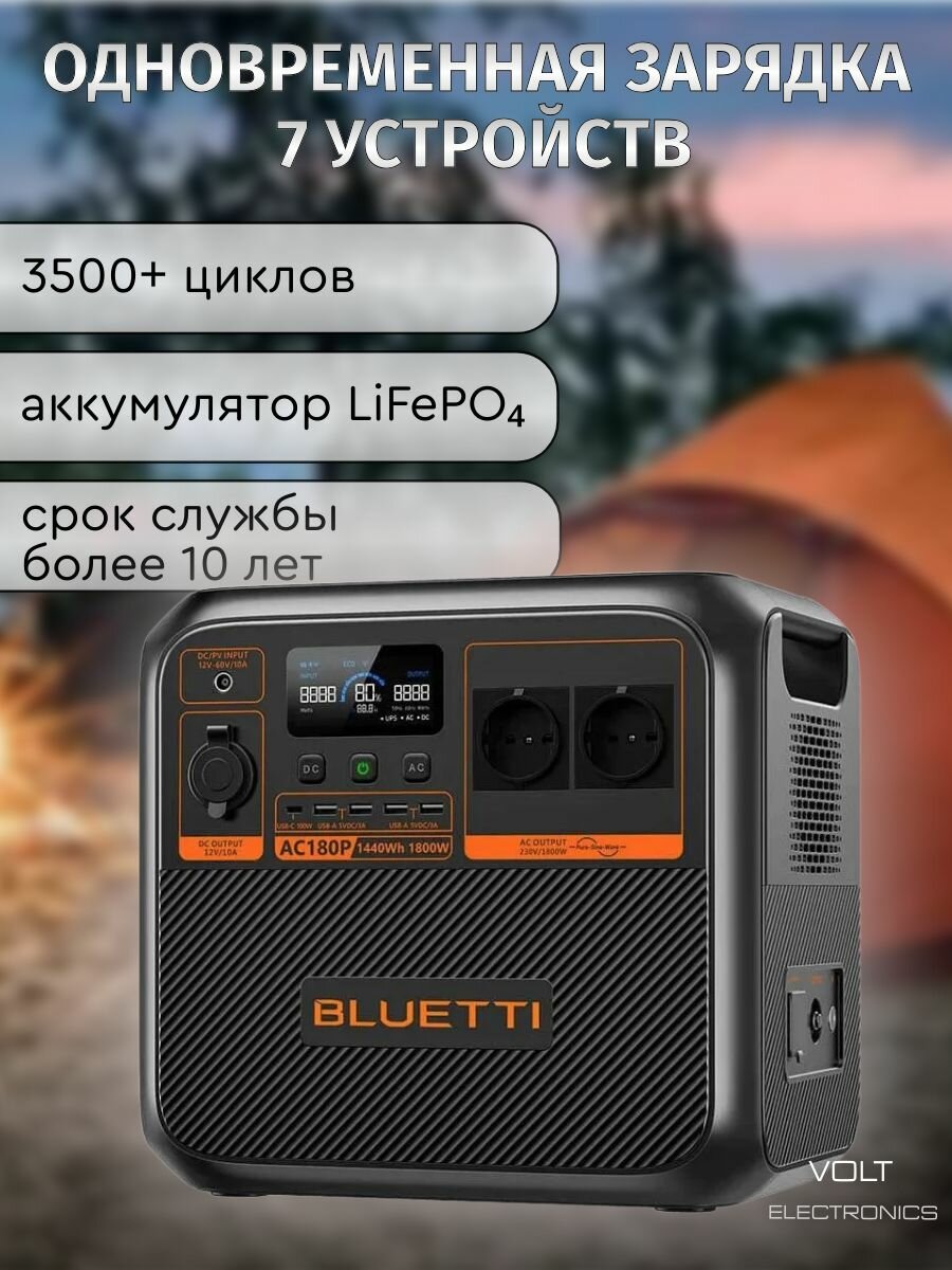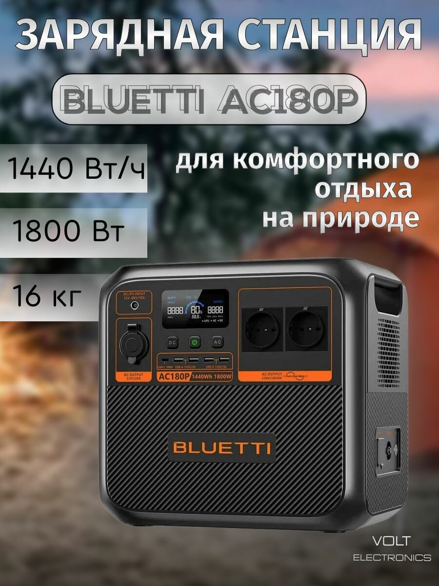 Купить Портативная зарядная станция BLUETTI AC180P (емкость 1440 Втч | технология Power Lifting | мощность до 1800 Вт | UPS) с доставкой по всей России.