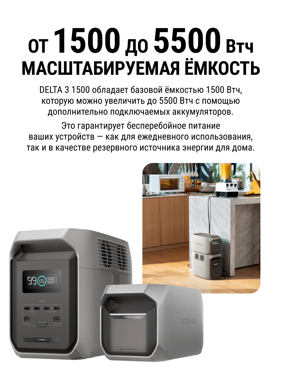 Купить Портативная зарядная станция EcoFlow DELTA 3 1500 (1536 Втч) с доставкой по всей России. Портативная зарядная станция EcoFlow DELTA 3 1500 (1536 Втч): сравнение цен, характеристики, фото, актуальное наличие и цены.